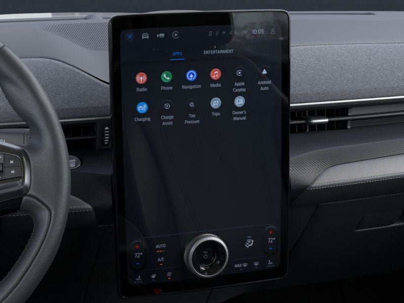 This unit has auto-adjust speed for safe following. The leather seats in the vehicle are a must for buyers looking for comfort, durability, and style. Bluetooth® technology is built into this mid-size suv, keeping your hands on the steering wheel and your focus on the road. This vehicle offers Apple CarPlay for seamless connectivity. The vehicle offers Android Auto for seamless smartphone integration. The installed navigation system will keep you on the right path. Protect this 2025 Ford Mustang Mach-E from unwanted accidents with a cutting edge backup camera system. The vehicle is pure luxury with a heated steering wheel. Load groceries and much more with ease into the vehicle thanks to the power liftgate. This 2025 Ford Mustang Mach-E emanates grace with its stylish gray exterior. It has a Electric Motor high output engine. Conquer any rainy, snowy, or icy road conditions this winter with the all wheel drive system on this 2025 Ford Mustang Mach-E .