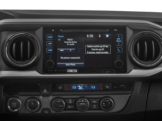 Protect the Toyota Tacoma from unwanted accidents with a cutting edge backup camera system. The leather seats in this model are a must for buyers looking for comfort, durability, and style. An off-road package is equipped on the vehicle. This model features a hands-free Bluetooth® phone system. You'll never again be lost in a crowded city or a country region with the navigation system on this model. The rear parking assist technology on this small pickup will put you at ease when reversing. The system alerts you as you get closer to an obstruction. It offers Automatic Climate Control for personalized comfort. This vehicle's blind spot monitor enhances safety. This vehicle has a V6, 3.5L high output engine. When you encounter slick or muddy roads, you can engage the four wheel drive on this model and drive with confidence. Set the temperature exactly where you are most comfortable in the vehicle. The fan speed and temperature will automatically adjust to maintain your preferred zone climate.