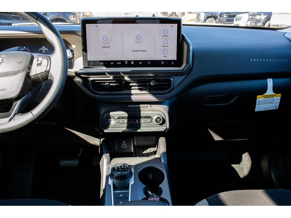 The Ford Bronco Sport offers Android Auto for seamless smartphone integration. Start this vehicle from inside with remote start. This unit offers Apple CarPlay for seamless connectivity. This 2025 Ford Bronco Sport features a hands-free Bluetooth® phone system. The rear parking assist technology on it will put you at ease when reversing. The system alerts you as you get closer to an obstruction. This vehicle keeps you comfortable with Auto Climate. The Ford Bronco Sport has automated speed control that adjusts to maintain a safe following distance, enhancing highway driving convenience. Protect it from unwanted accidents with a cutting edge backup camera system. Maintaining a stable interior temperature in it is easy with the climate control system. This vehicle has a 3 Cyl, 1.5L high output engine. This mid-size suv shines with clean polished lines coated with an elegant white finish. When you encounter slick or muddy roads, you can engage the four wheel drive on this Ford Bronco Sport and drive with confidence.